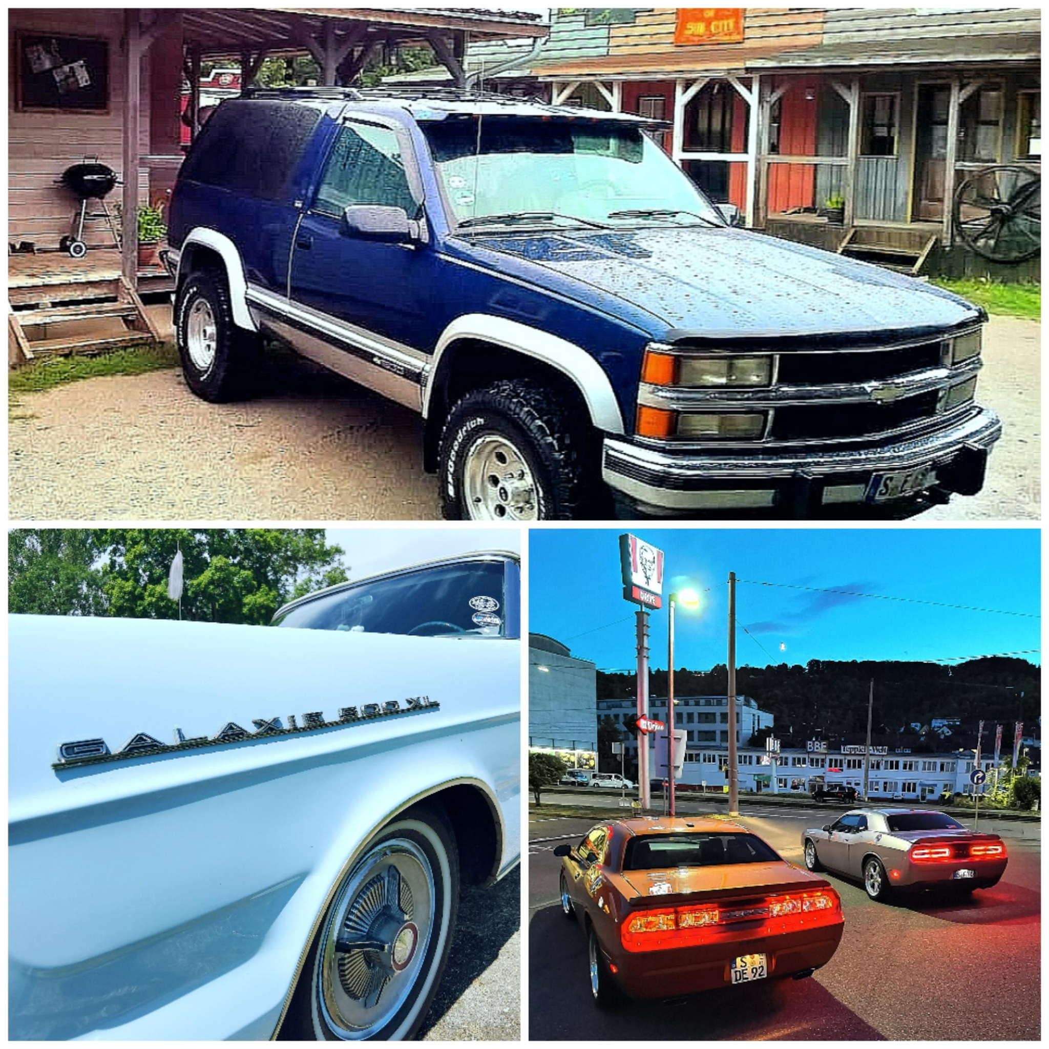 Seit über dreißig Jahren und einigen Fahrzeugen sind wir derzeit mit unserem 2012'er Dodge Challenger R/T unterwegs. Im Winter ist der Chevy K1500 im Einsatz und gelegentlich der 65'er Ford Galaxie 500XL Convertible.